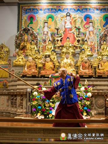 有鑑於末法時期群魔亂舞,為令佛陀正法常住,修行者道心堅固,2019年4月13日,台灣雷藏寺恭請當代法王蓮生活佛盧勝彥主壇南摩穢跡金剛大權神王佛護摩大法會。是日,真佛宗各級弘法人員、同門、善信大德,雲集台灣雷藏寺,敲鐘聚會,共沐佛恩,齊心護持,與會四眾弟子有增無減。