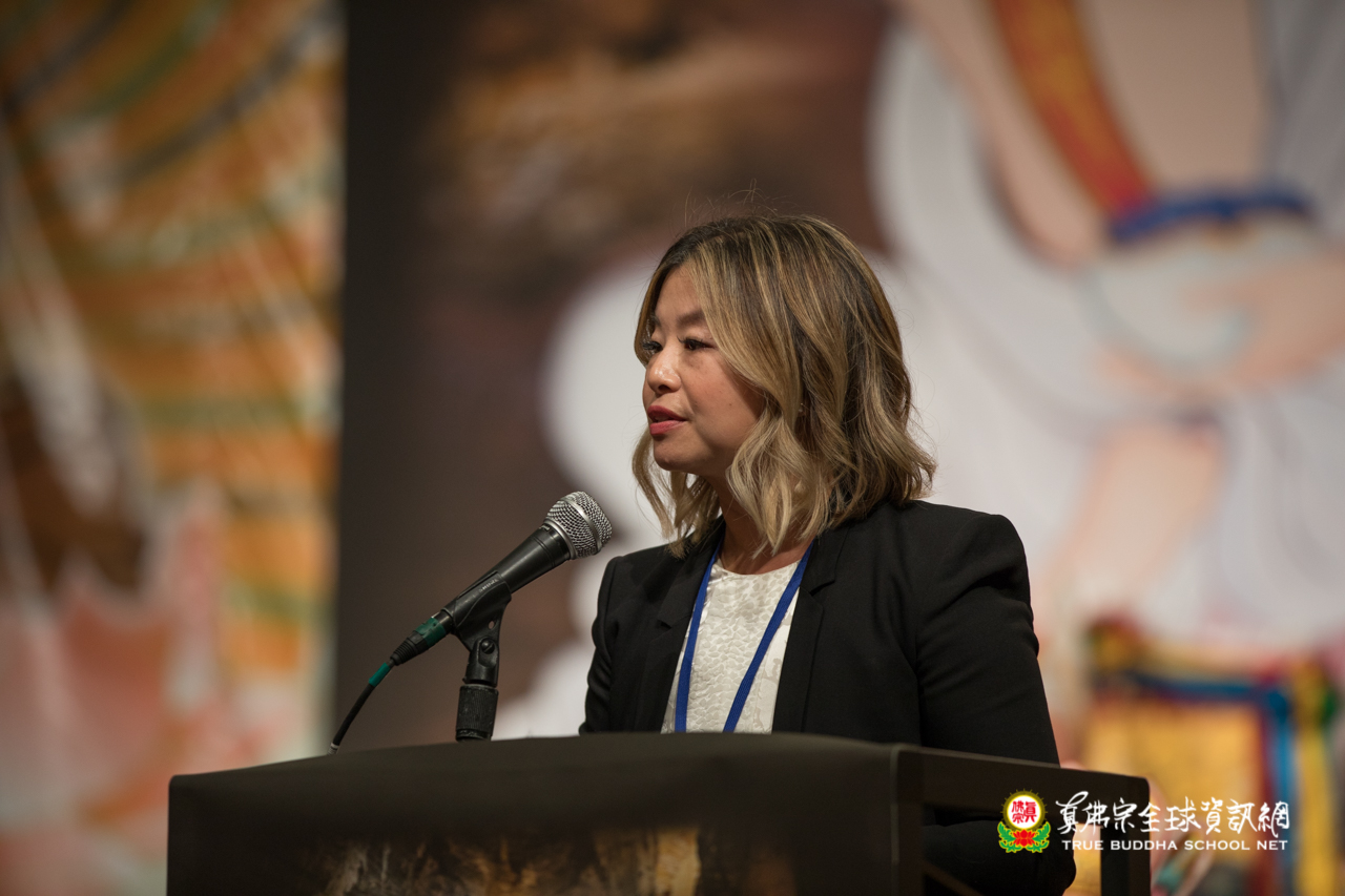 Snohomish 副縣長Kendee Yamaguchi致詞中談到非常高興參與此次盛會,對尊貴的法王蓮生活佛表達崇高的敬意。尤其是在聽過盧勝彥佈施基金會的各種健康照顧與教育的善款捐助,利益了眾多有需要的人。她非常感謝基金會對社區所做出的貢獻,希望將來能與盧勝彥佈施基金會合作,造福更多需要被關懷的人。