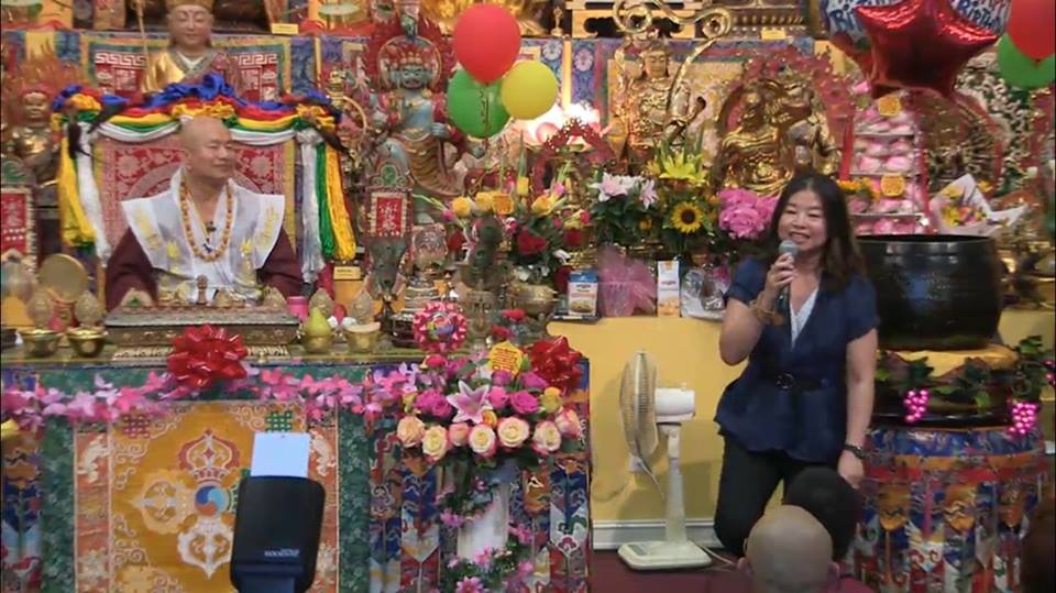 同修後,首先由「西雅圖雷藏寺」代表釋蓮旺上師,向蓮生活佛敬獻哈達及供養,祝賀師佛生日快樂;接著由〈宗委會〉捐贈「尼泊爾」賑災善款4萬多美金給「盧勝彥佈施基金會」,以及「華光功德會」蓮慈上師代表捐贈善款,協助「盧勝彥佈施基金會」幫助教育及健康醫療照顧,並由總裁盧佛青博士接受。