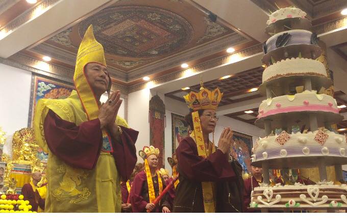 接著,蓮生活佛與蓮香師母切完蛋糕後,慈悲賜授眾等「賜授「妙色身如來不共大法」,法會圓滿吉祥。