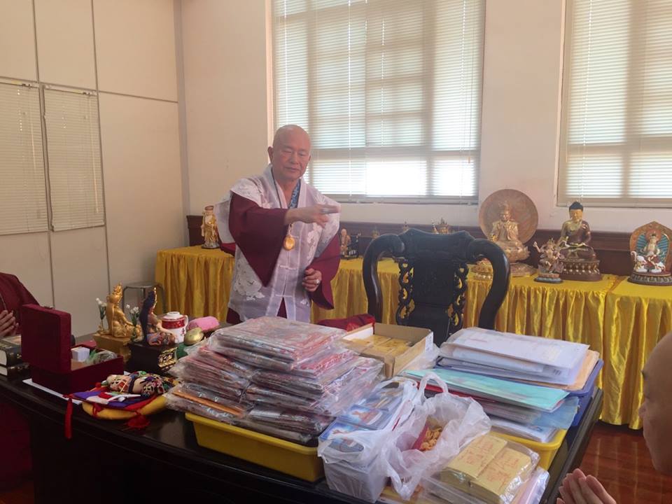 蓮生活佛於大殿上香後,隨即上六樓加持信件,處理宗務。