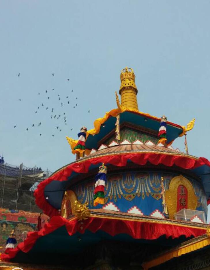 當蓮生活佛 盧勝彥法王進入大幻化網金剛壇城時,天空出現大群飛鳥,圍繞佛塔,象徵吉祥!