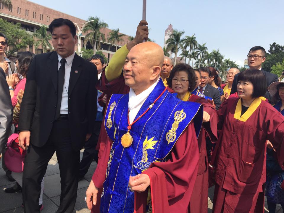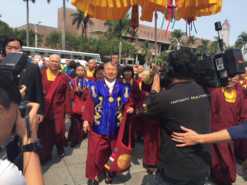 11:00蓮生活佛,蓮香師母在莊嚴盛大的迎接儀式中抵達會場。