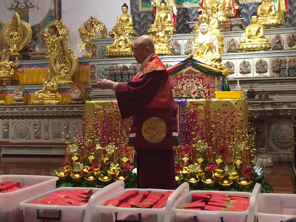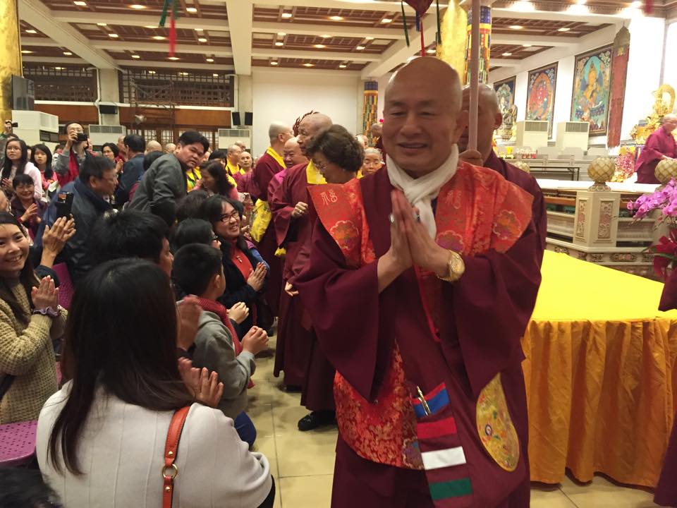 晚餐前,〈台灣雷藏寺〉蓮哲上師、台灣密教總會理事長蓮歐上師代表獻供祝賀師尊、師母新春快樂。