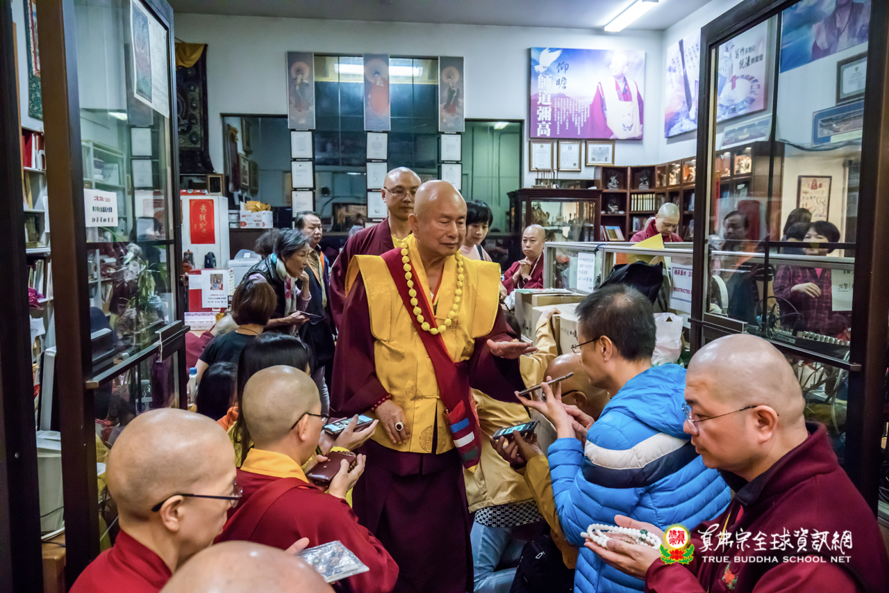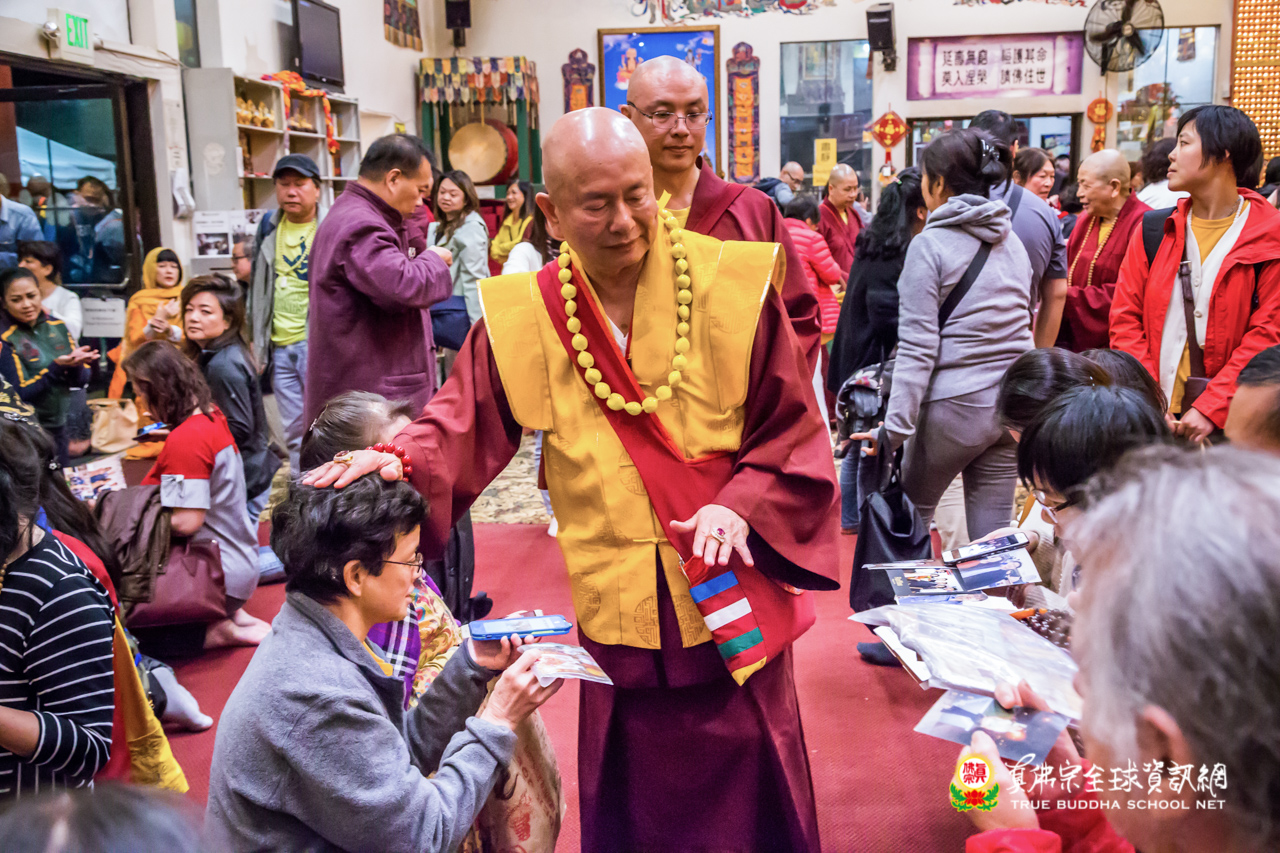 精采開示結束後,聖尊為求皈依的信眾賜授灌頂、加持大悲咒水,以及開光佛像。離開雷藏寺前,聖尊仍慈悲的為大眾摩頂加持滿願。步出雷藏寺外,入秋的夜晚細雨綿綿,雨絲沁涼,內心一片溫暖,感恩聖尊如此無私、透徹的教導,弟子感恩之情無法言喻。