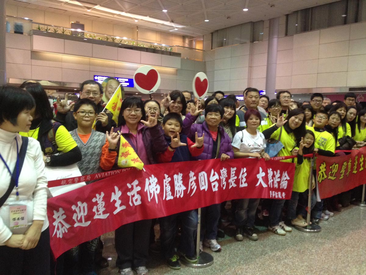2014年11月16日蓮生活佛 盧勝彥返台弘法,逾千善信擠爆「桃園國際機場」,接機場面浩大