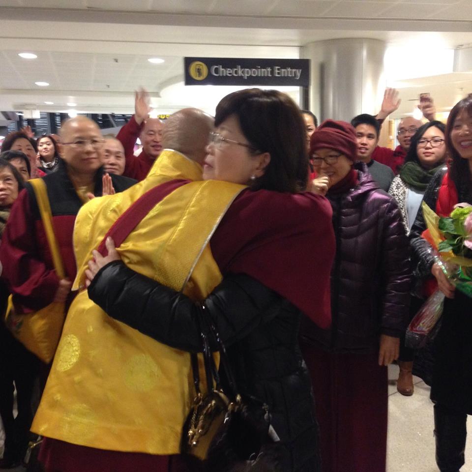 2014年11月14日晚間,蓮生活佛 盧勝彥在「西雅圖國際機場」即將返台弘法,西雅圖機場難得見到送機大陣仗;師母 蓮香上師、佛青、佛奇一家人,一一和師尊擁抱,祝願師尊返台弘法吉祥平安。