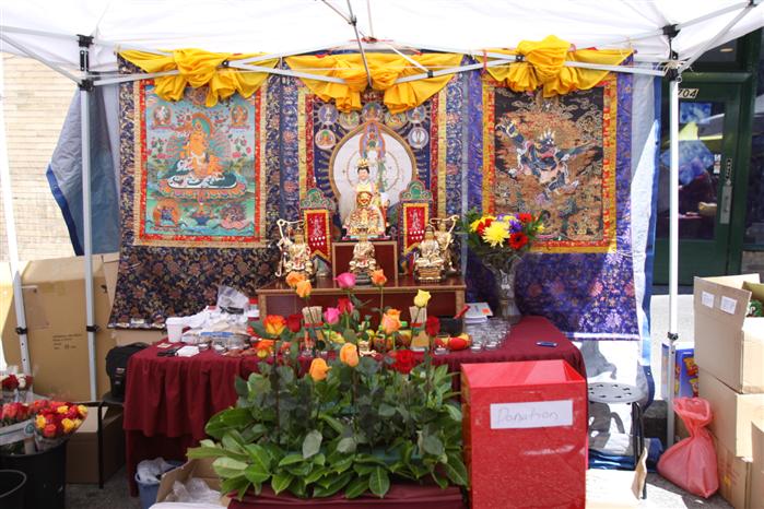 攤位上展出聖尊著作的中英文版,唐卡、唸珠及各種佛具等,並安奉了密藏式的臨時壇城供大眾上香祈願,禮佛、求籤及許願,另有結緣經書贈送。