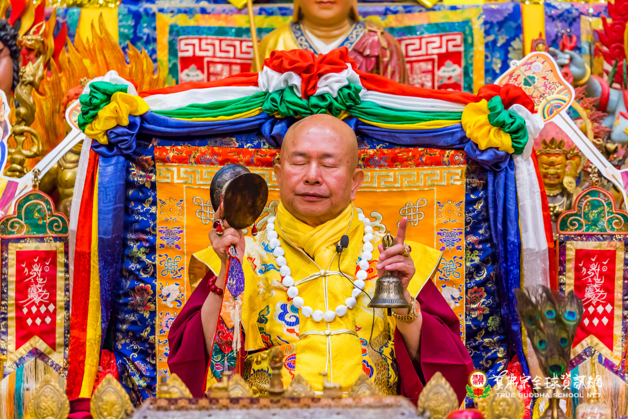肅穆圓滿的同修後,聖尊談到,在密教裡面特別有財神法,一般顯教是沒有財神法的。財神法在很多的經典有提到:先以欲鈎之,再令入佛智。其意思是說,先讓眾生的慾望能夠得到圓滿,然後再以修法的過程,進入如來的智慧。必須要用方便權宜的方法渡眾生,才能發揮力量吸引眾生。