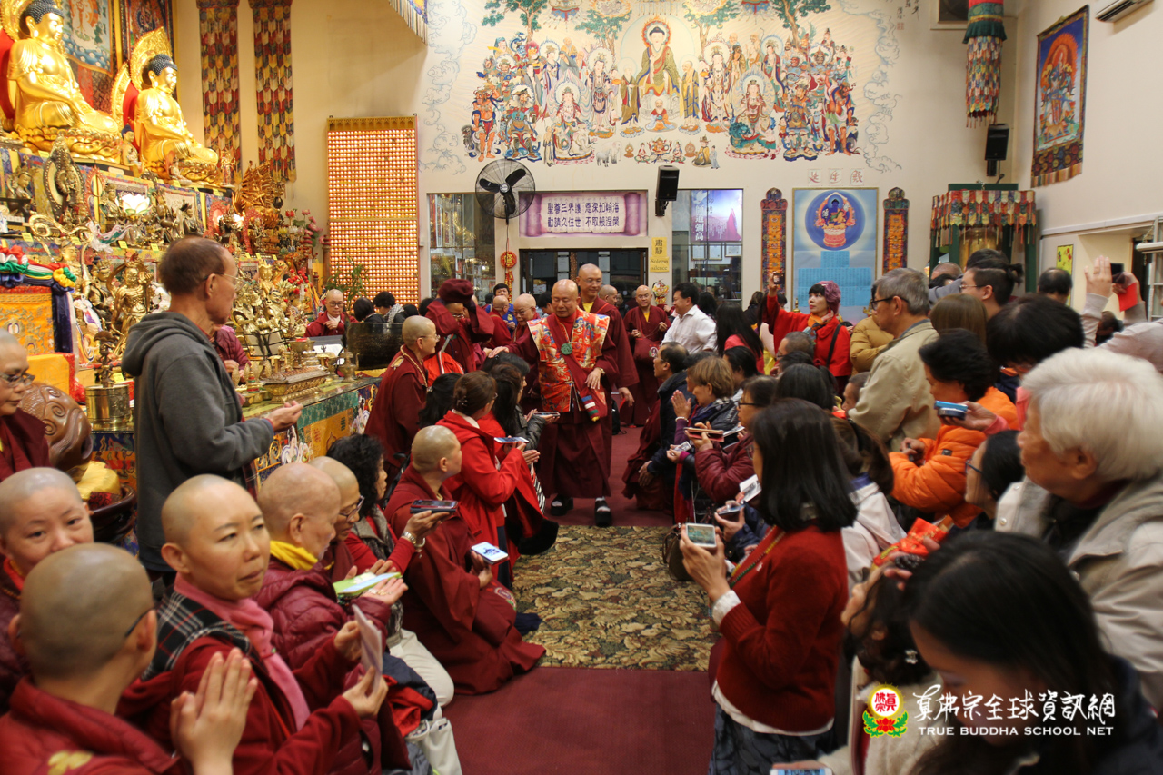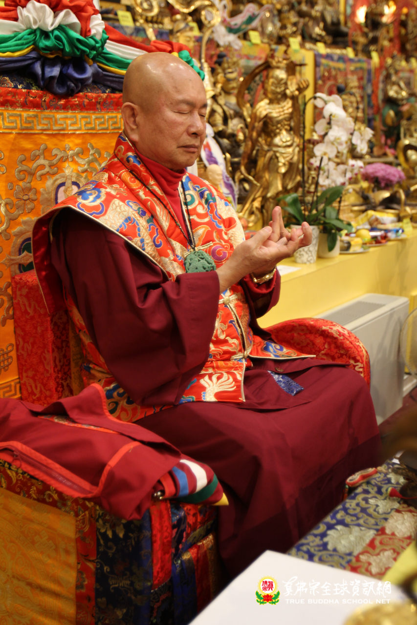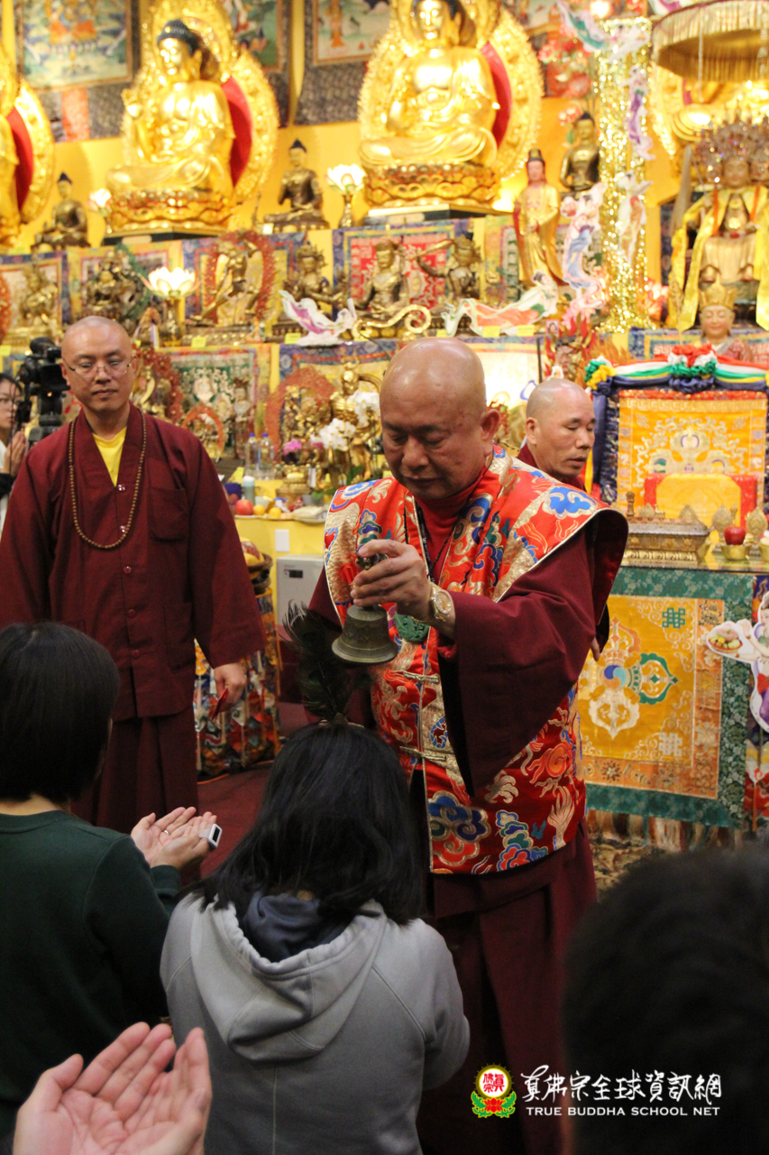 聖尊精闢的法語開示後,雷藏寺唱誦組法師們帶領大眾唱誦阿彌陀佛聖號,然後,聖尊為求皈依的信眾賜受灌頂,加持大悲咒水,開光佛像。臨行前,聖尊還摩頂加持大眾。感恩根本上師慈悲將佛法的法流灌溉每一位眾生的心靈,讓我們能心領神會佛法的真實見!