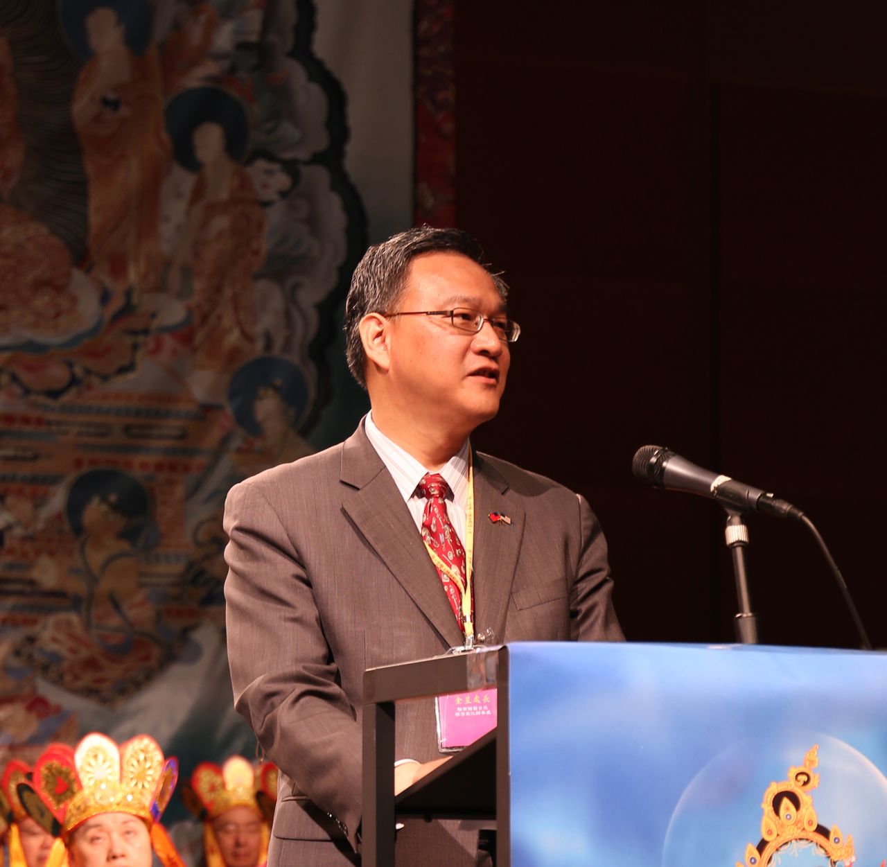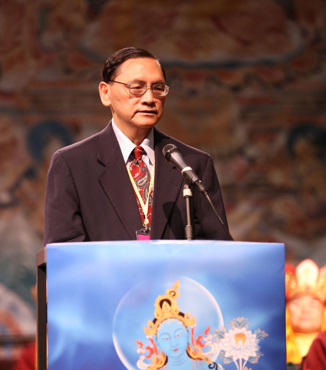 接著,由「中華民國駐西雅圖台北經濟文化辦事處」金星處長致詞祝賀法會成功之外,並讚揚《真佛宗》蓮生活佛盧勝彥對於每一年都能在華盛頓州舉辦這樣世界性 規模的大法會,為現在的全世界災難祈福消災,以佛法的精神及慈悲的關懷,讓大家都能沐浴佛光,帶來了甘霖和希望。金星處長已經連續三年都來參加息災超度的 大法會,處長特別讚揚〈西雅圖雷藏寺〉的在地貢獻,及「盧勝彥布施基會」慈悲善行眾所欽佩,這是西雅圖,也是台灣社會的榮耀!
