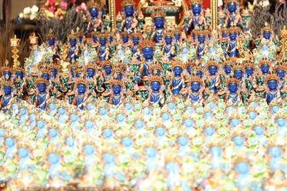 接著,恭請蓮生活佛 盧勝彥為釋續百等五位佛子授出家戒,及為十多位善信授菩薩戒,及六對新人福證。