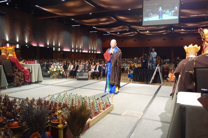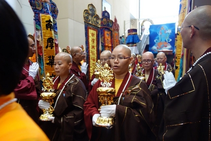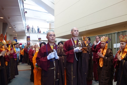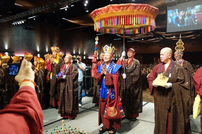 迎師隊伍浩大莊嚴,此次前來護持的上師、法師超過兩百人;護持與會的十方善信超過三千人。