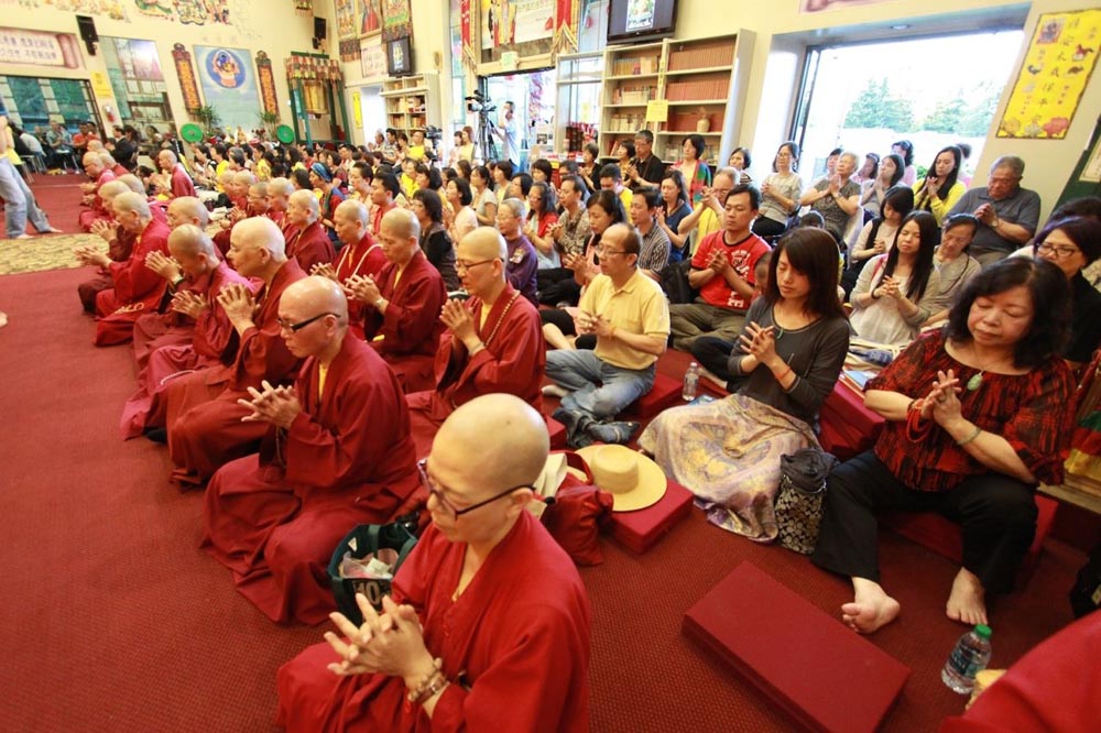 開示完,大眾抱以熱烈掌聲,感恩蓮生法王的寶貴開示,最後,蓮生活佛 盧勝彥法王與大眾同唱佛號,並慈悲賜授「皈依灌頂」、加持「大悲咒水」及佛像文物加持「開光」,同修活動在蓮生法王一一為眾弟子們摩頂加持中,圓滿吉祥。