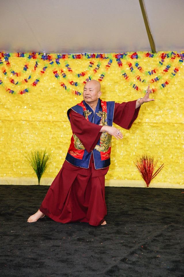 在最熱烈的掌聲之 中,主持人迎請師尊上台,以一段前所未有的「鋼琴表演」,一段震撼的「太鼓」雷音,一曲柔美「太極舞」,以及剛猛威力十足的「金剛拳」,讓台下所有人,全 體起立鼓掌歡呼!一時,天上天下,歡聲雷動,與佛同慶,與佛同歡,場面震撼,前所未見!同時,也讓大家見識到師尊的多才多藝,讓人為之驚豔,留下最美好難 忘的一次祝壽盛會!