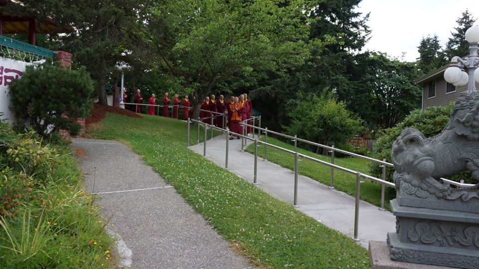 在此與大家分享,美好西城的天空下,蓮生活佛 盧師尊帶領眾弟子在〈西雅圖雷藏寺〉繞佛的情景;看著照片,耳邊彷彿還迴盪著師尊唸佛的聲音:南~摩~阿~彌~陀~佛…