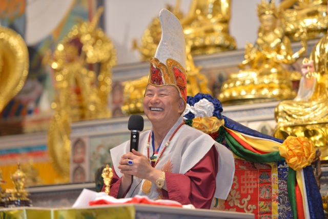 由於簽書、獻哈達、求加持的人潮眾多,下午四時許,法會才正式開始。法會開始時,首先由 釋蓮伃金剛上師代表敬獻哈達,以表最高敬意。
