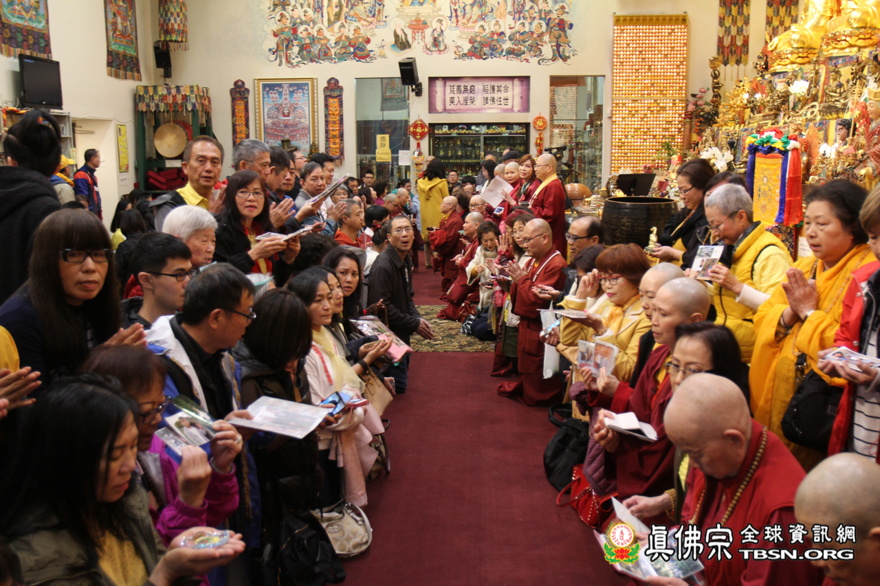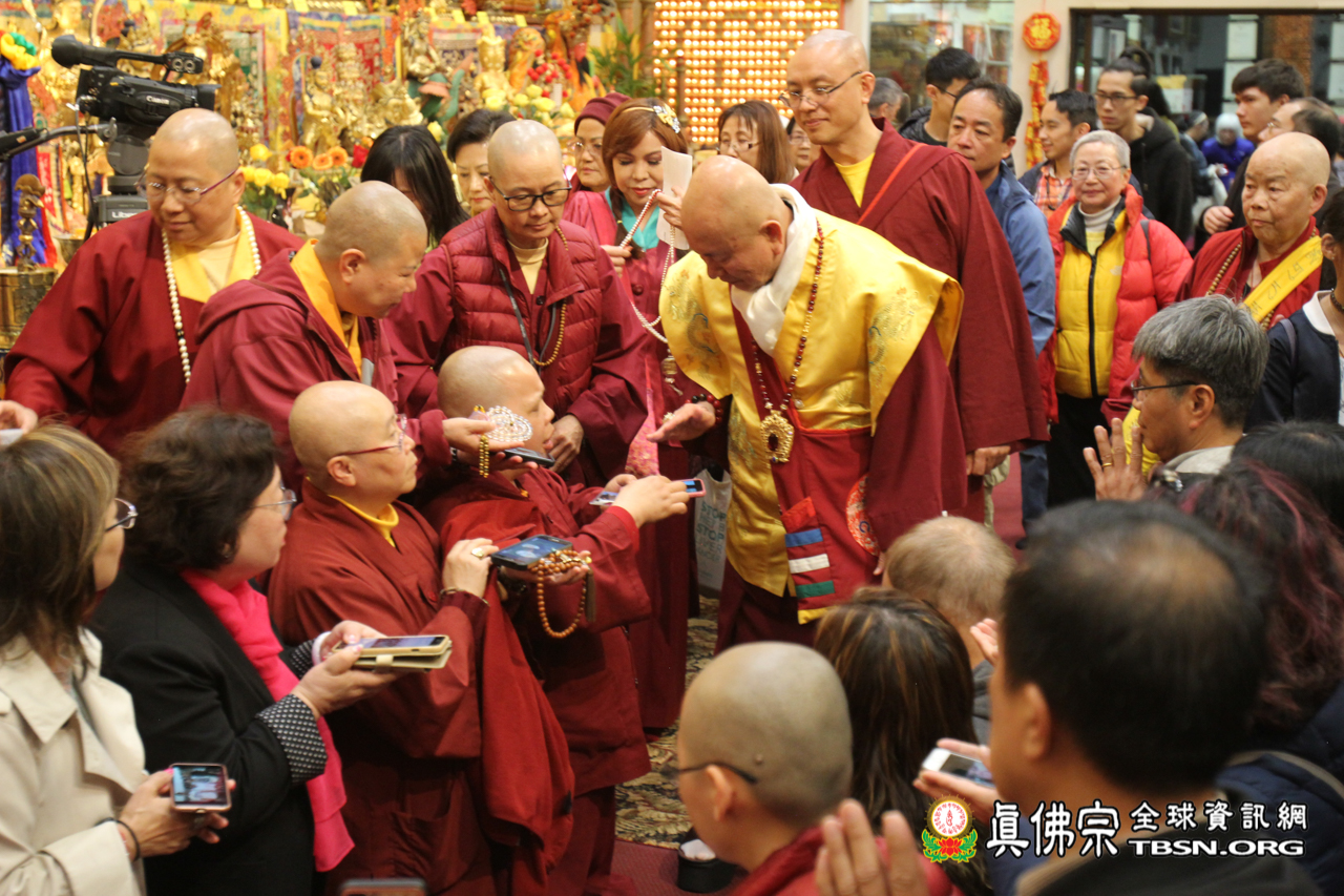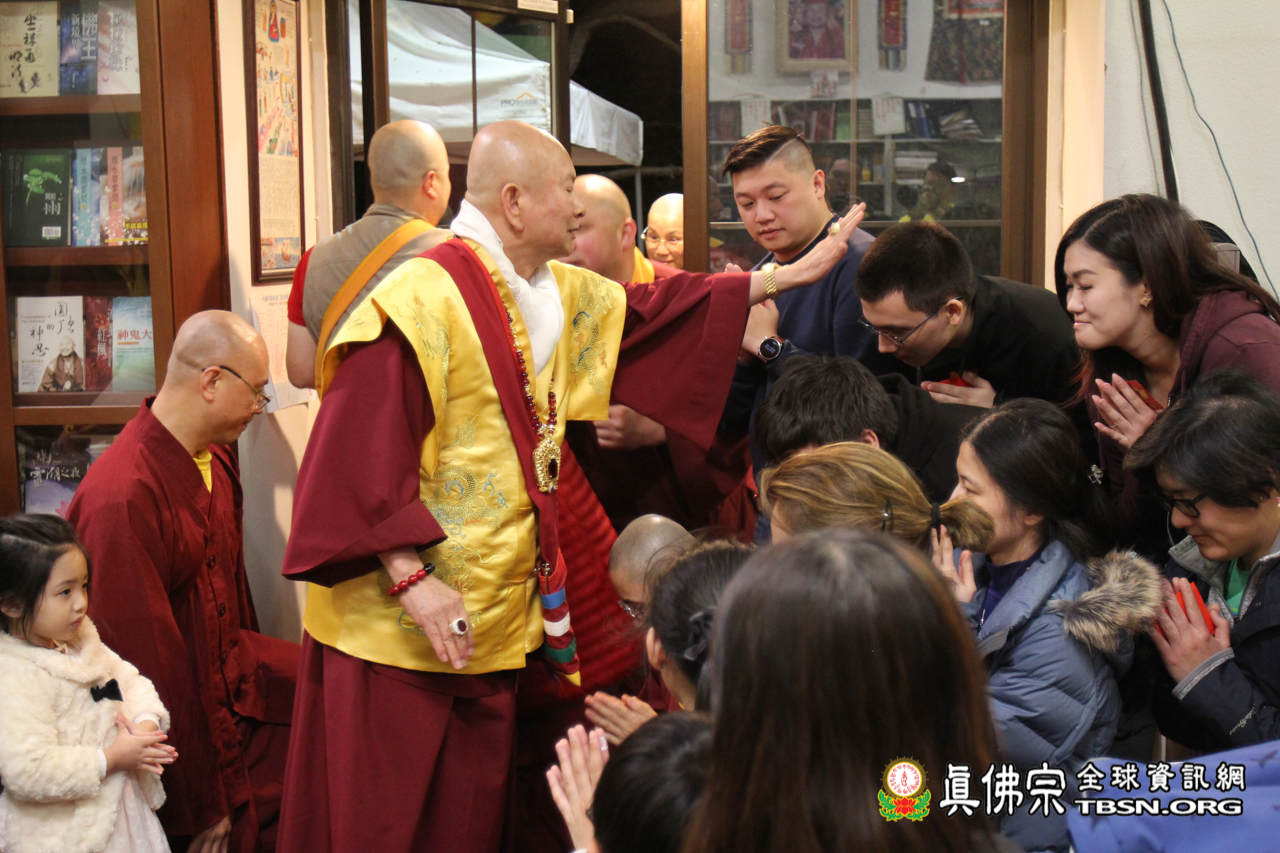 開示結束後,聖尊賜授皈依灌頂、加持大悲咒水和佛像開光。臨行前還慈悲一一為每位善信摩頂加持。雖今日氣溫比較低,但今晚與佛同修,得到佛光注照的加持,讓每個人的心中都暖暖的,充滿了光明!