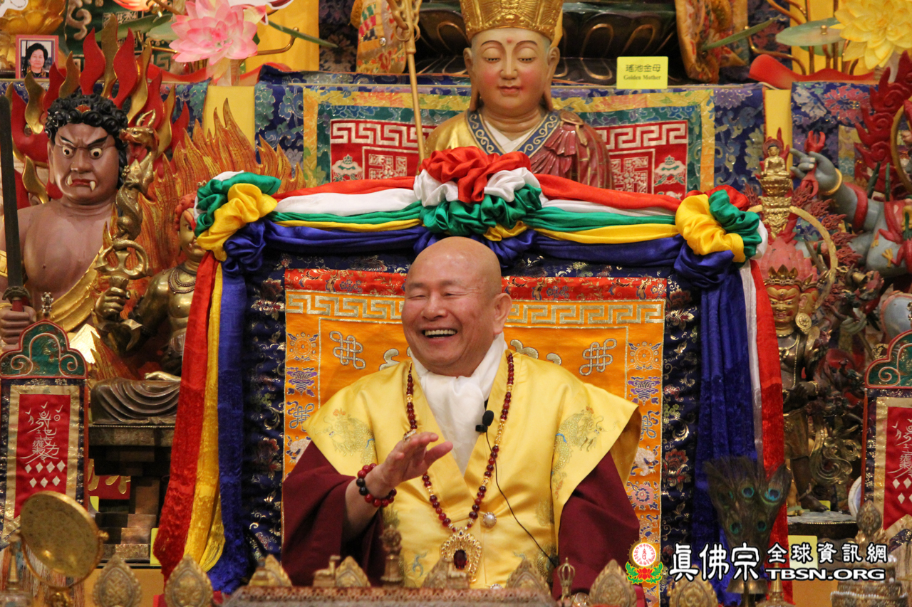 黃財神法有一個特殊的地方,以前的作法是要先點上香,再由裊裊的煙幻化為須彌山,而黃財神就住在須彌山的半山腰。半山腰屬於四天王天,黃財神為其中的多聞天王,而四天王皆為財神。天上最富有的就是四天王,海中最富有的是龍王,地上最富有的是山神與監牢地神。我們修資糧道,就是修持讓自己能夠在人間無缺、能夠定下心來好好修行、不為金錢奔波。聖尊提到越南亦有雷藏寺與上師,並且有兩位相當優秀誠實的夫妻,在台灣也見過,他們專門翻譯師尊文集成越南文,對真佛宗有很大的貢獻,目前已從越南移民至紐西蘭,正在找工作,聖尊請黃財神針巴拉和紐西蘭堂主幫助這對年輕夫妻順利找到工作。
