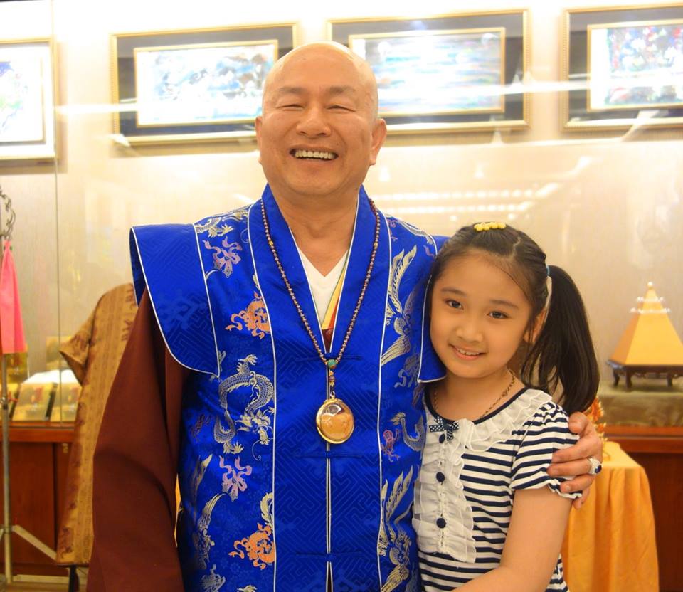 蓮生活佛 盧勝彥師尊在2014年3月29日「不動明王護摩法會」前簽書時,來了一位可愛甜美如公主般的小美女,當場並為師尊獻唱兒歌。