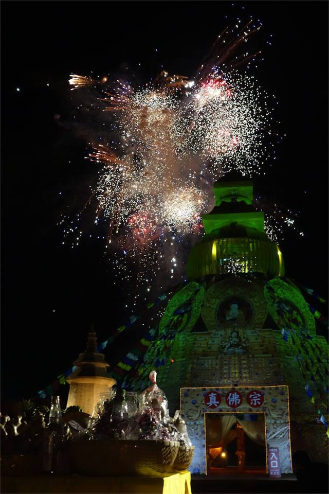 開光後,蓮生活佛帶領大眾繞塔,並參觀難得一見的沙雕藝術。