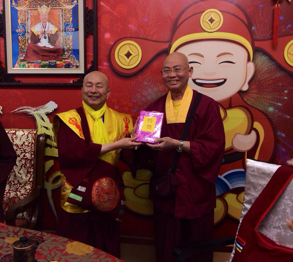 師母的181號抽到第三獎,由蓮歐上師頒發