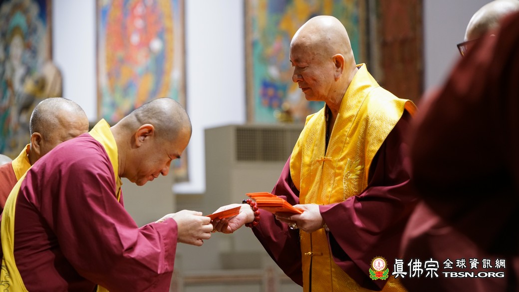 整個活動最高潮是由師尊敲「吉祥鼓」與打了一套「金剛棍」加持與會弟子。隨後,師尊親自發送紅包給與會的每一個弟子,人人幸福滿溢。相信在師尊的賜福下,紅豬年將會是諸事大吉,福慧增長豐收的一年!