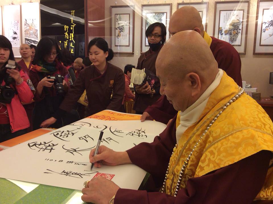 蓮生活佛 盧勝彥法王簽名加持情景。