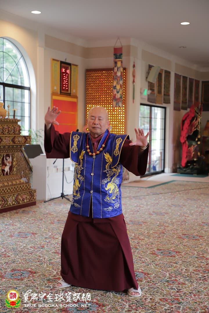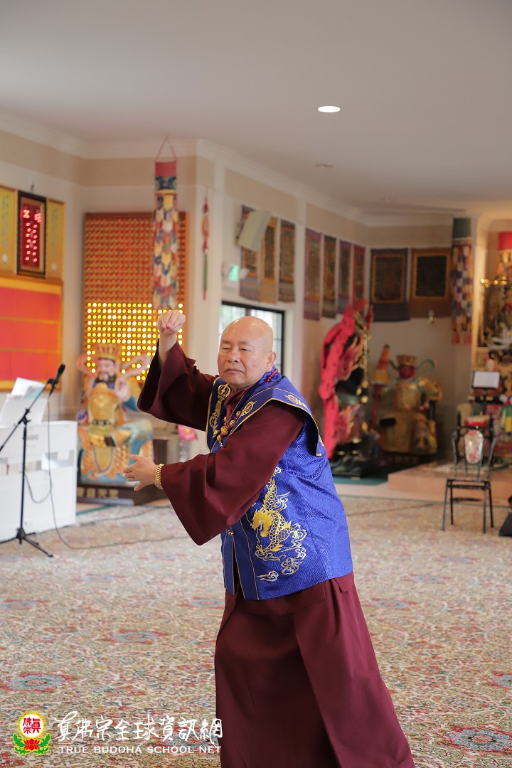 回到大殿之後,師尊提議要運動一下,於是師尊打了一套太極拳練身,也加持大家。師尊氣沉丹田,將一套太極拳打得剛柔並濟,拳法有如行雲流水,氣、神、形融為一體,進退旋轉清靈圓活,頗有大家之風範。