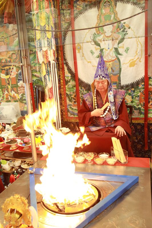【雨文 報導】2017年9月3日下午三時許,蓮生活佛 盧勝彥法王於〈彩虹雷藏寺〉主持「黑面金母護摩大法會」暨講授「道果」。