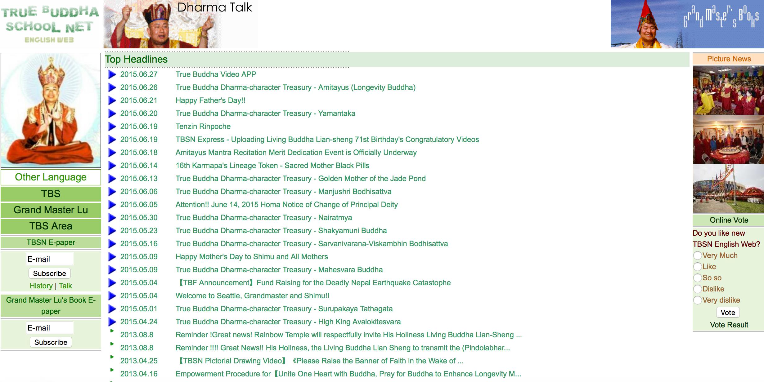 「真佛宗全球資訊網TBSN英文版」http://tbsn.org/english2/