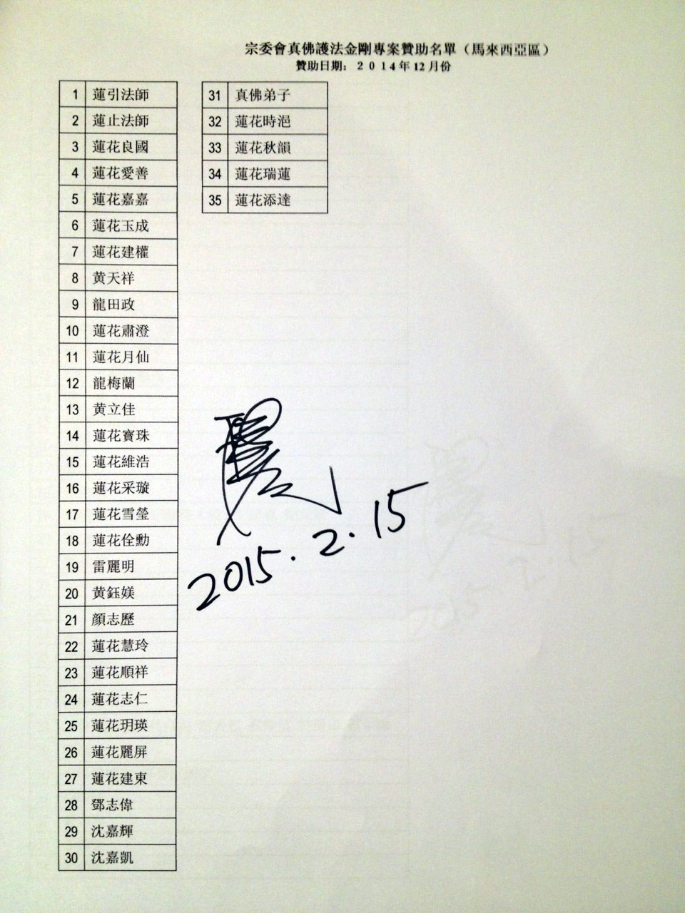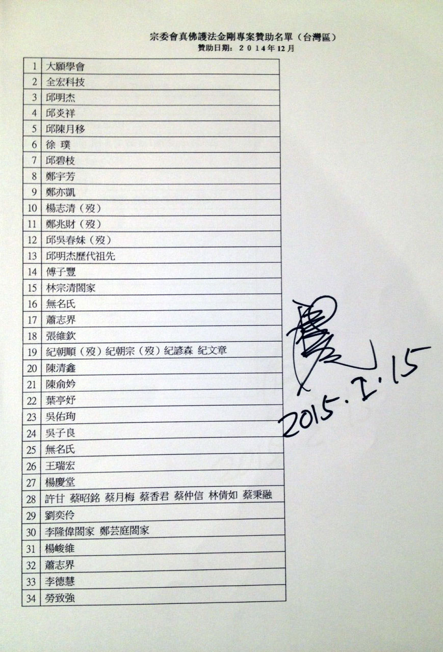 【宗委會 通告】感恩 蓮生活佛 盧勝彥法王慈悲加持2014.12.1 ~12.31【真佛護法金剛榜】贊助者名單