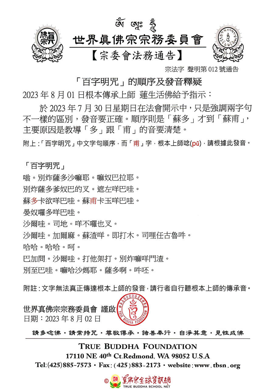【宗委會法務通告】「百字明咒」的順序及發音釋疑