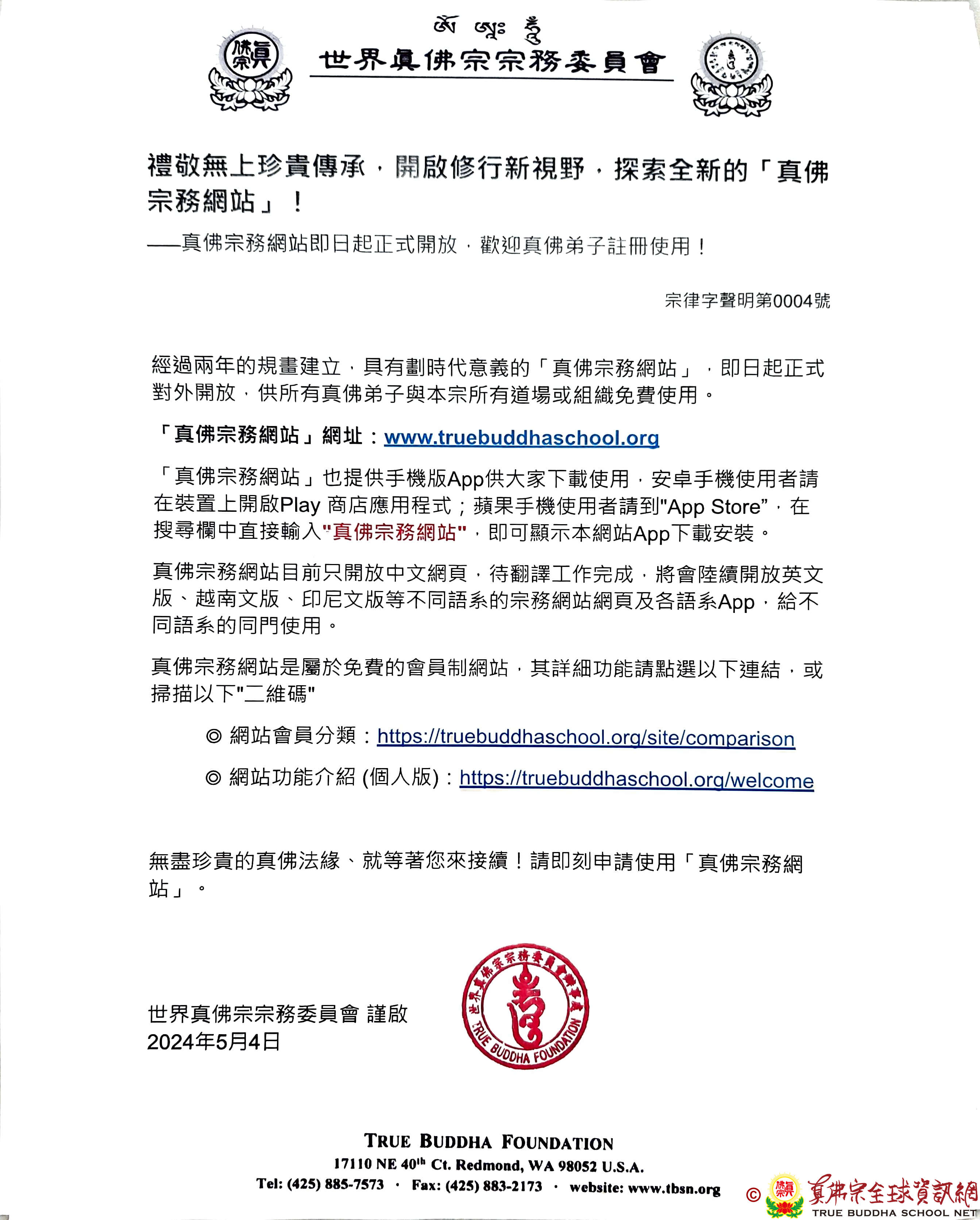 ——真佛宗務網站即日起正式開放,歡迎真佛弟子註冊使用!