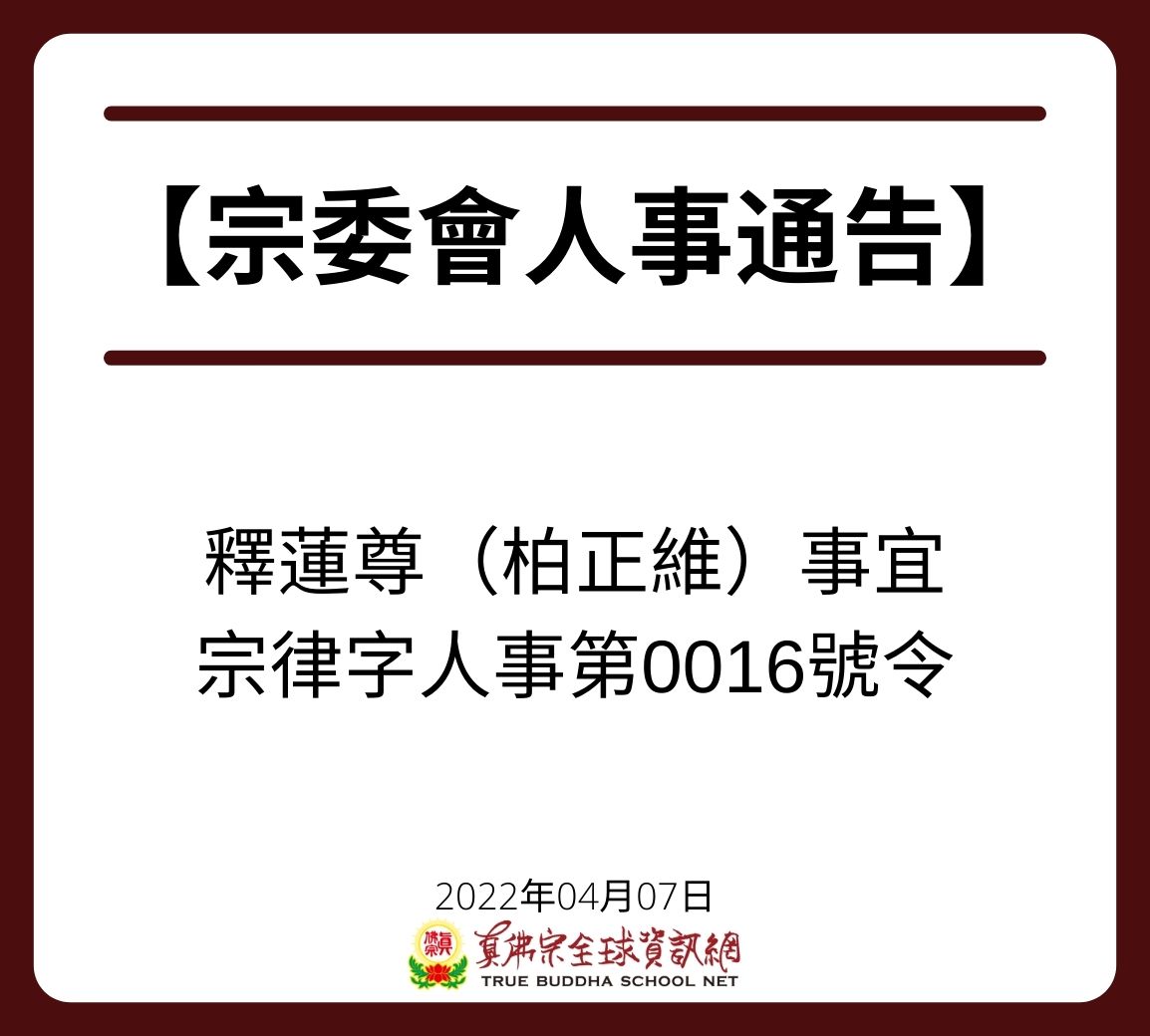 宗委會通告 法王聖尊蓮生活佛 真佛宗 釋蓮麒上師