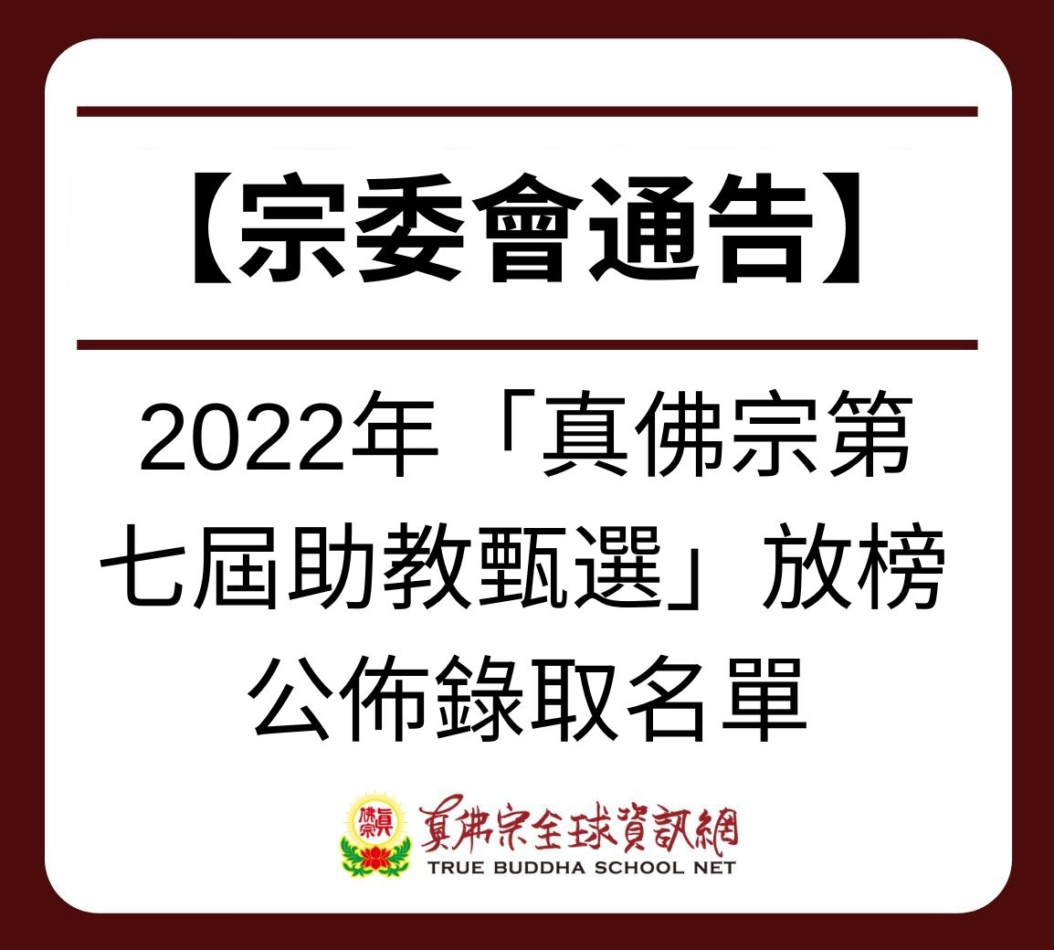 宗委會通告 真佛宗第七屆助教甄選